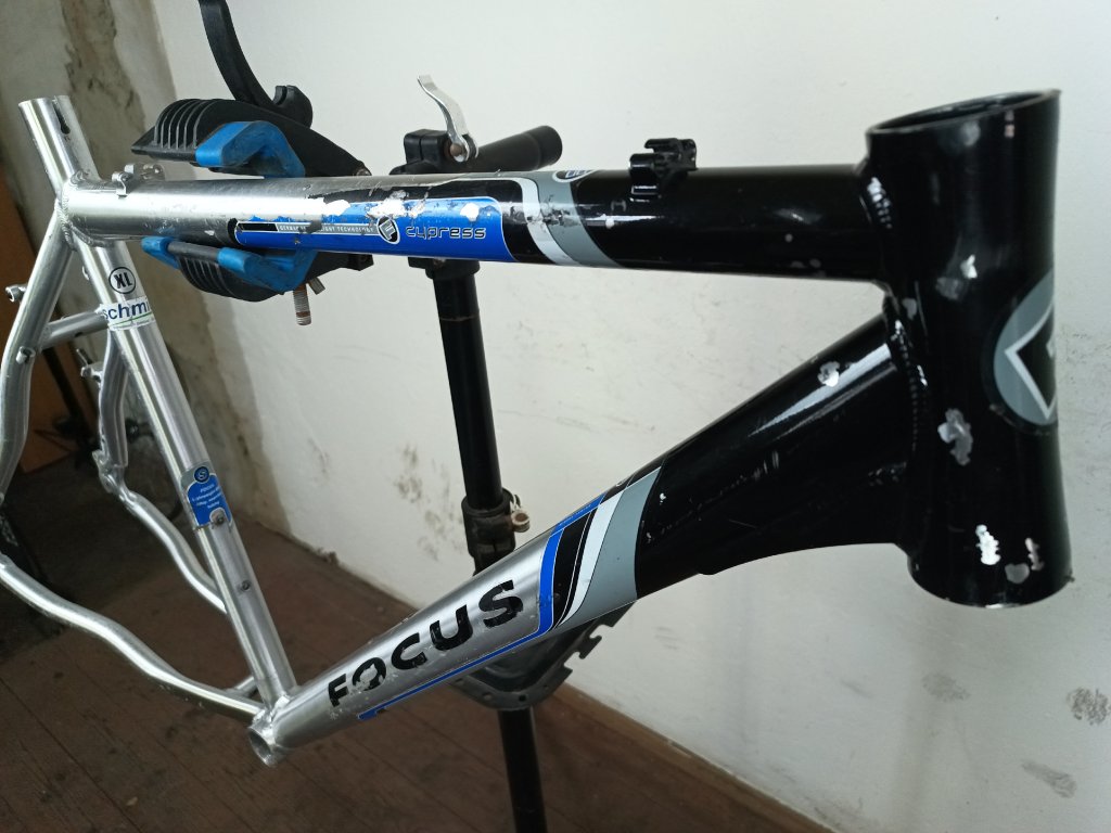 Rám horského kola německého výrobce Focus Cypress 26''. Hliníkový rám 21,5" (XL), délka hlavové trubky 155mm.