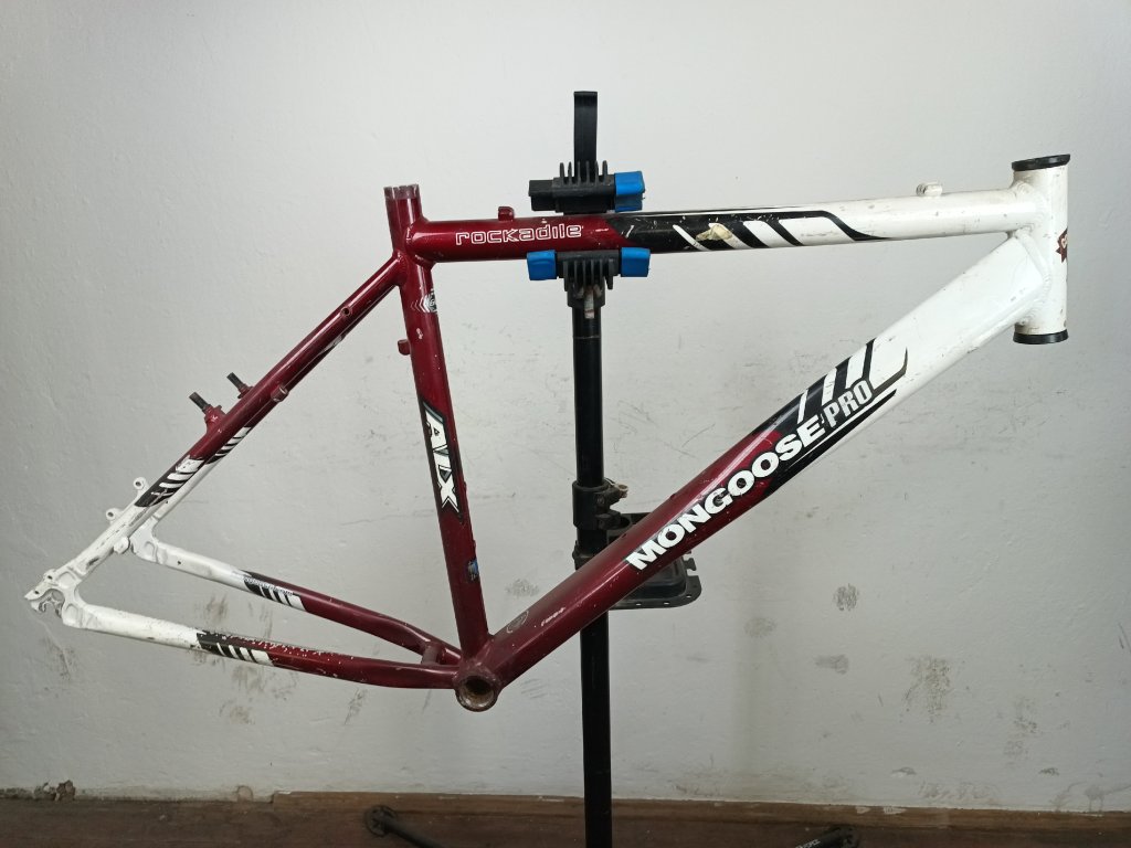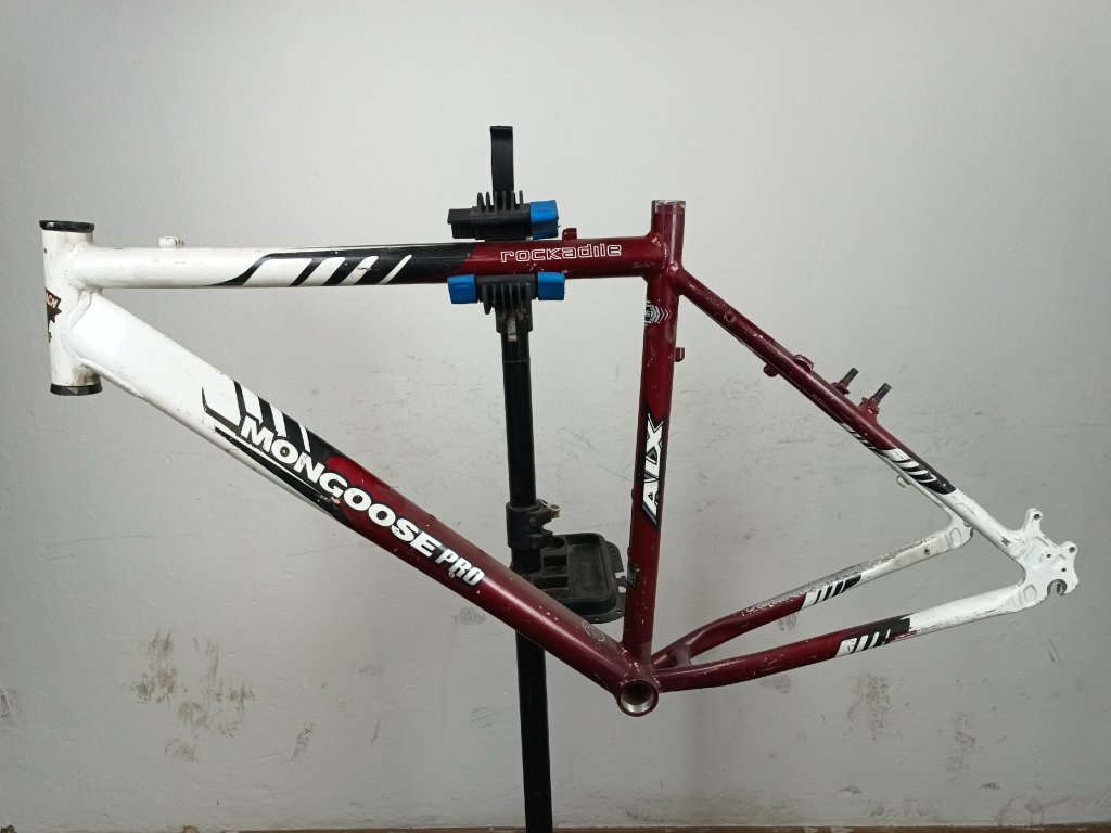 Rám horského kola amerického výrobce Mongoose Rockadile 26''. Hliníkový rám 20" (L), délka hlavové trubky 145mm. Obroušený střed viz foto.