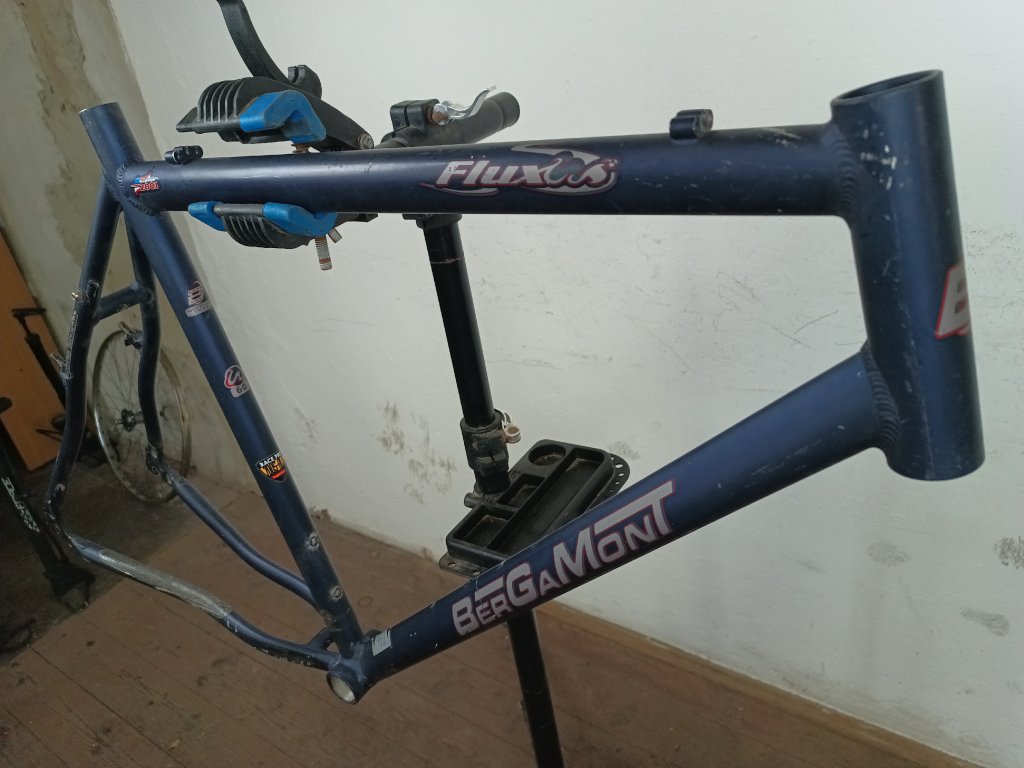 Použitý rám krosového kola německého výrobce Bergamont Fluxus 28''. Opravdu velký hliníkový rám 23,5", délka hlavové trubky 175mm.