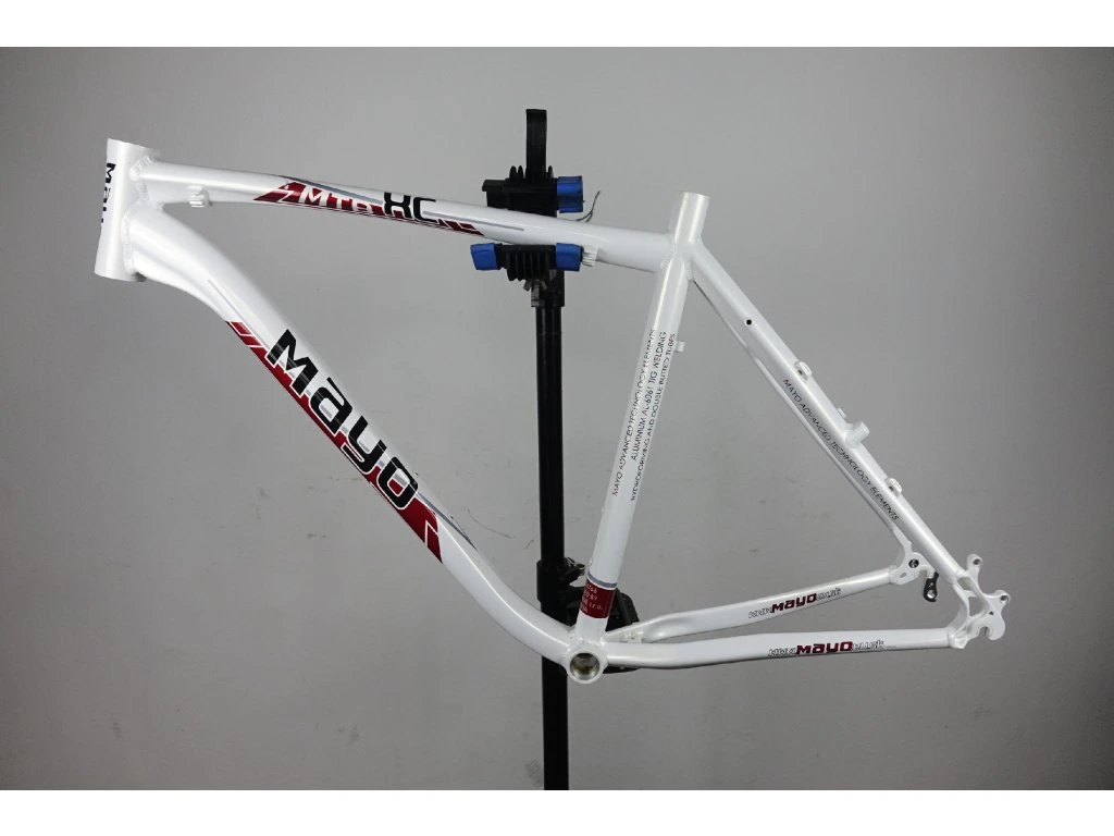 Nepoužitý hliníkový rám pro horské kolo slovenského výrobce Mayo XC 26", velikost 21". Průměr hlavy 44 mm (1 1/8"), délka 14 cm, průměr sedlovky 31,6 mm. Pro kotoučové, i "V" brzdy. Rám může nést známky nečistot, či drobných oděrek vlivem nesprávného skladování.