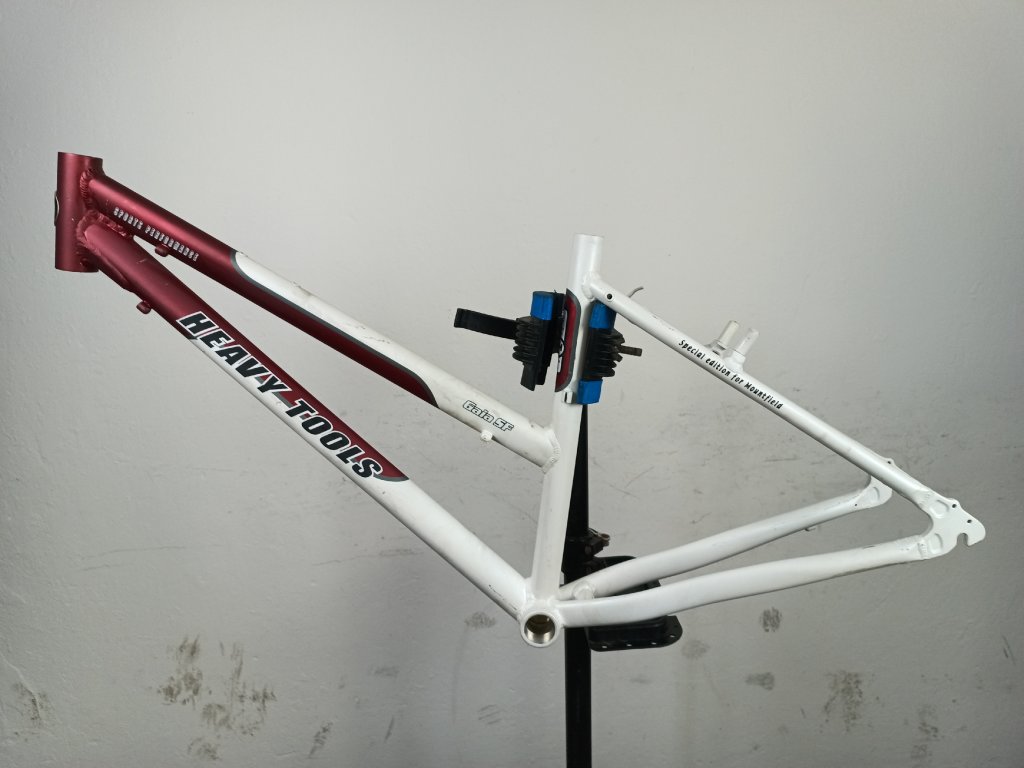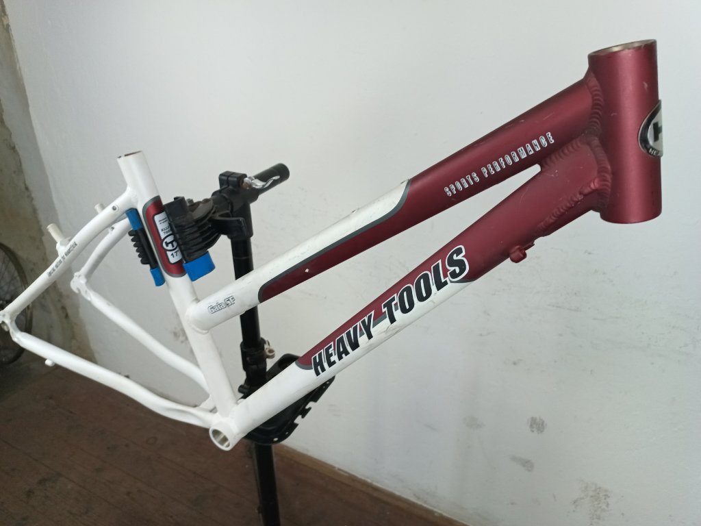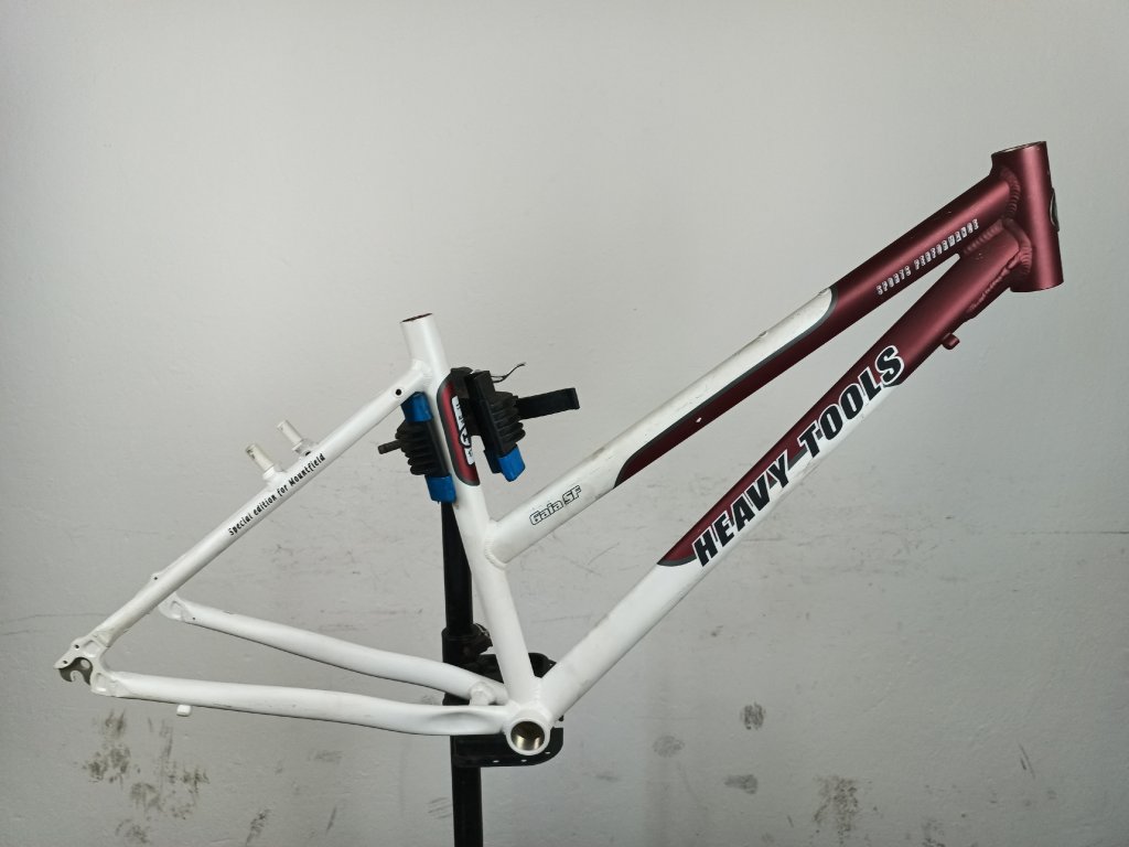 Nepoužitý rám trekingového kola rakouského výrobce Heavy Tools Gaia SF (Mountfield) 28''. Hliníkový rám 17", délka hlavové trubky 120mm. Rám pravděpodobně nebyl nikdy použitý, ovšem vlivem špatného skladování utrpěl oděrky a znečištění.