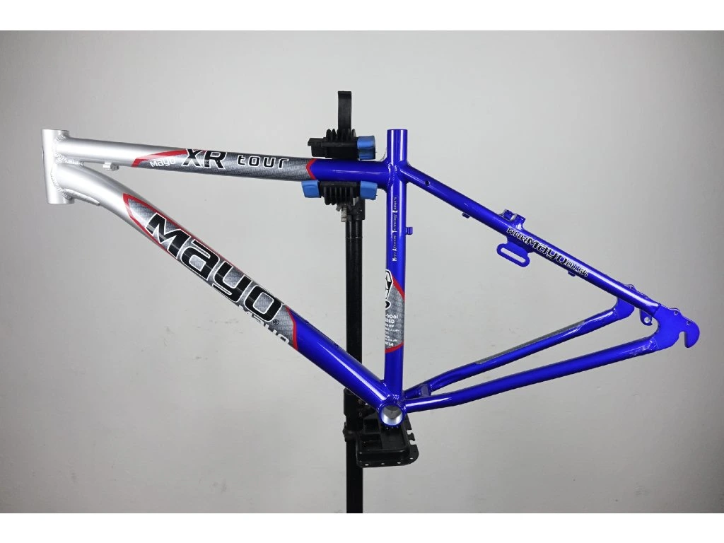 Nepoužitý hliníkový rám pro krosové kolo slovenského výrobce Mayo XR Tour 26", velikost 18". Průměr hlavy 34 mm (1 1/8"), délka 12 cm, průměr sedlovky 27,2 mm. Pro "V" brzdy. Rám může nést známky nečistot, či drobných oděrek vlivem nesprávného skladování.
