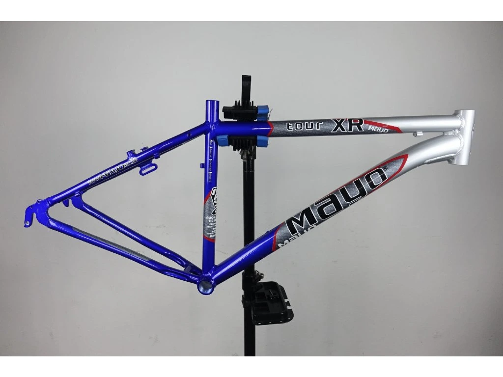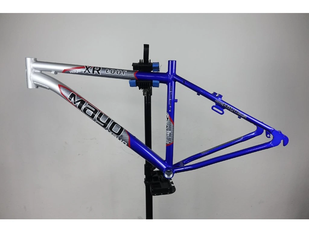 Nepoužitý hliníkový rám pro krosové kolo slovenského výrobce Mayo XR Tour 26", velikost 18". Průměr hlavy 34 mm (1 1/8"), délka 12 cm, průměr sedlovky 27,2 mm. Pro "V" brzdy. Rám může nést známky nečistot, či drobných oděrek vlivem nesprávného skladování.