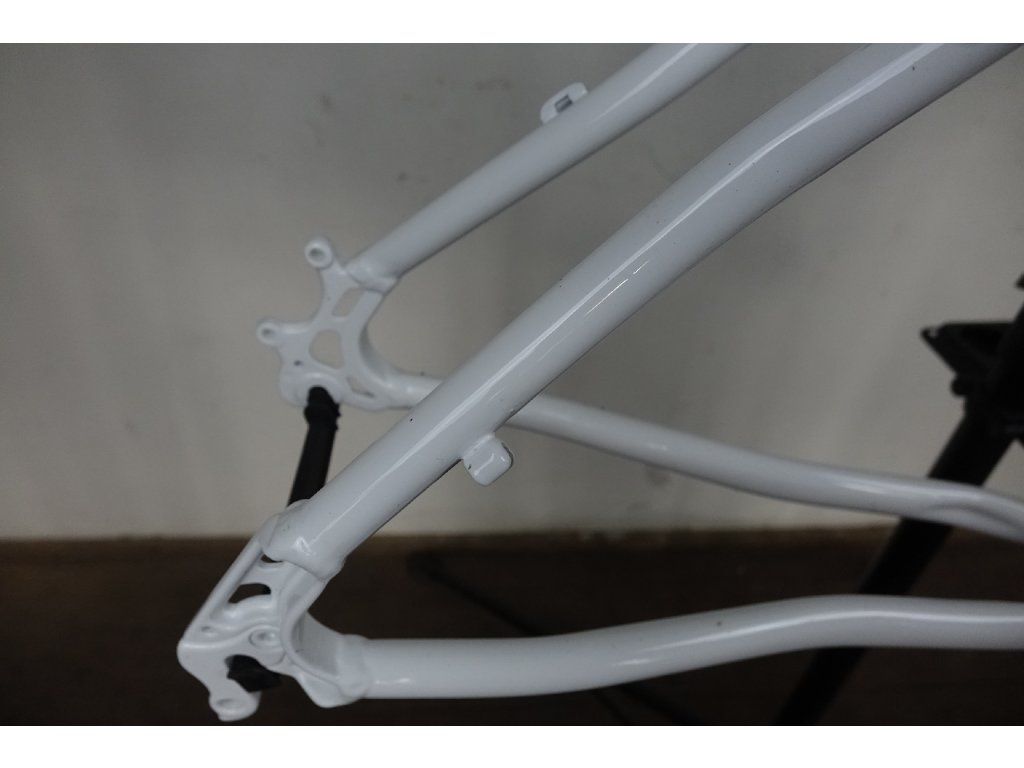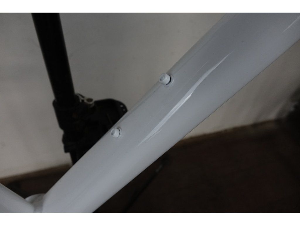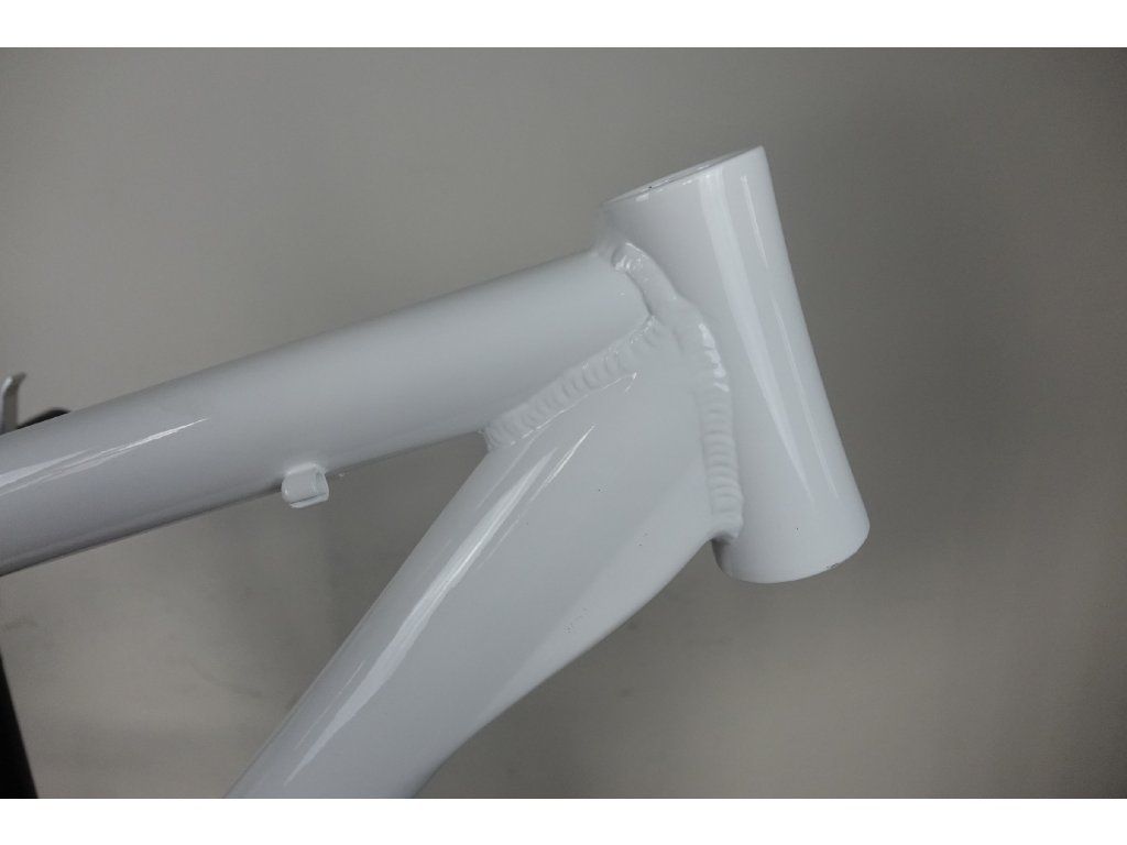 Zřejmě nepoužitý přelakovaný hliníkový rám pro trekingové (krosové) kolo 28", velikost 18". Průměr hlavy 44 mm (1 1/8"), délka 12 cm, průměr sedlovky 31,6 mm. Pro kotoučové, i "V" brzdy. Rám může nést známky nečistot, či drobných oděrek vlivem dlouhodobějšího skladování a transportu.