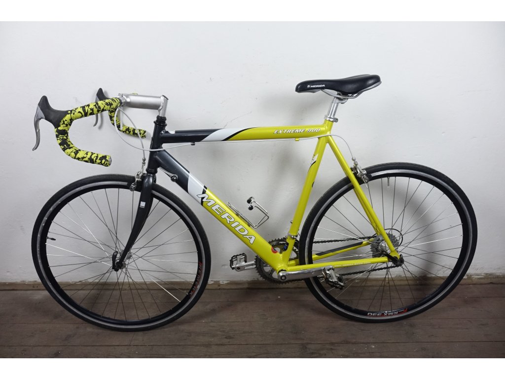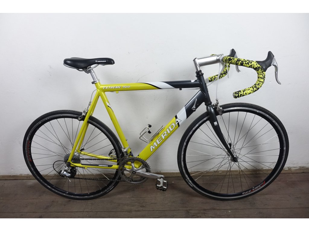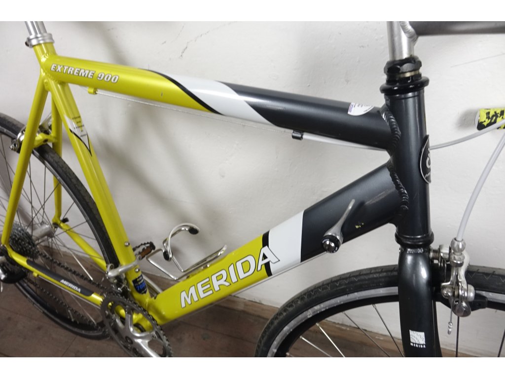 Použité silniční kolo tchajwanského výrobce Merida Extreme 900 28", hliníkový rám 60 cm. Velmi hezký stav. Repasováno (proveden kompletní servis), plně pojízdné. Nová lanka, bowdeny, špalky, omotávka. Prasklá plastová část u pravé brzdové páky viz foto.
